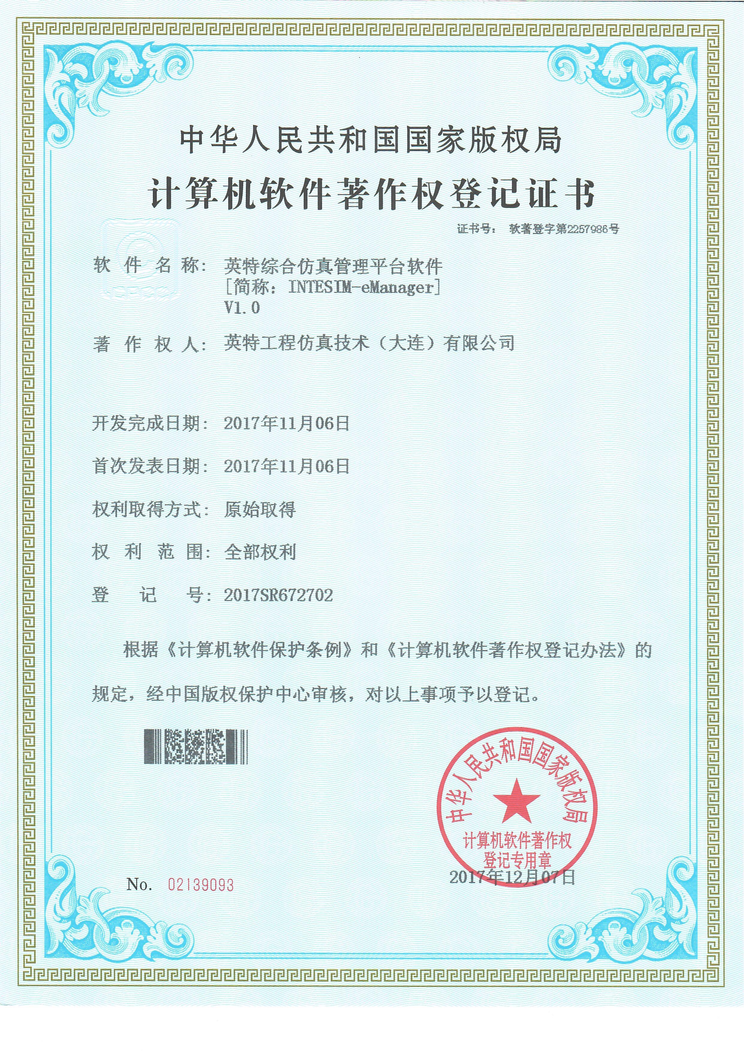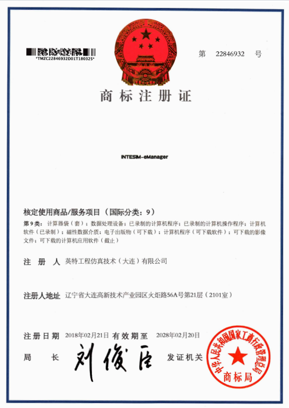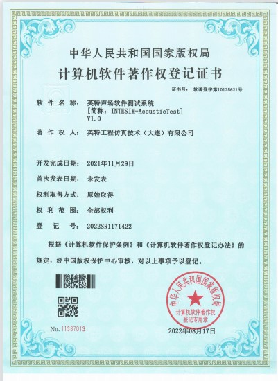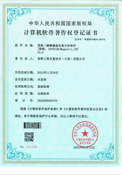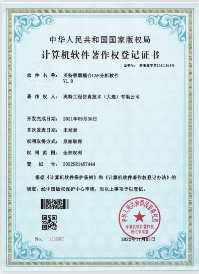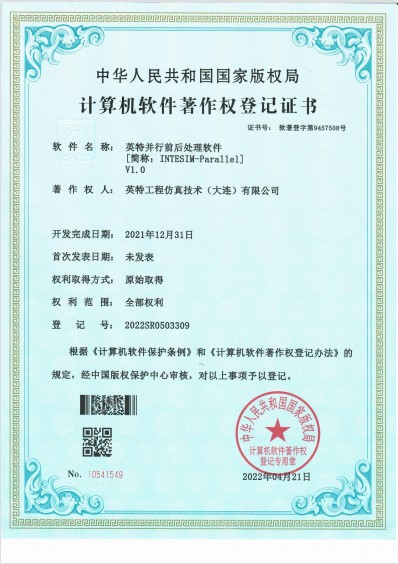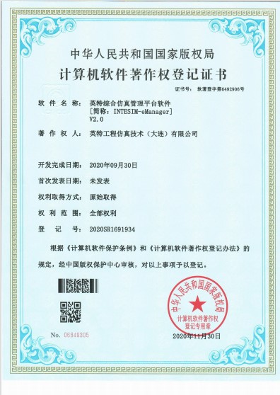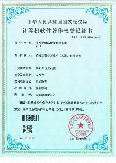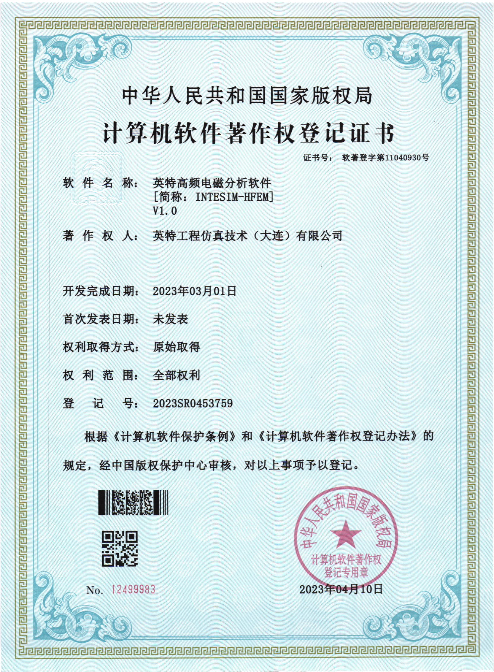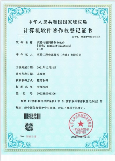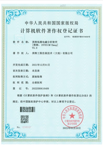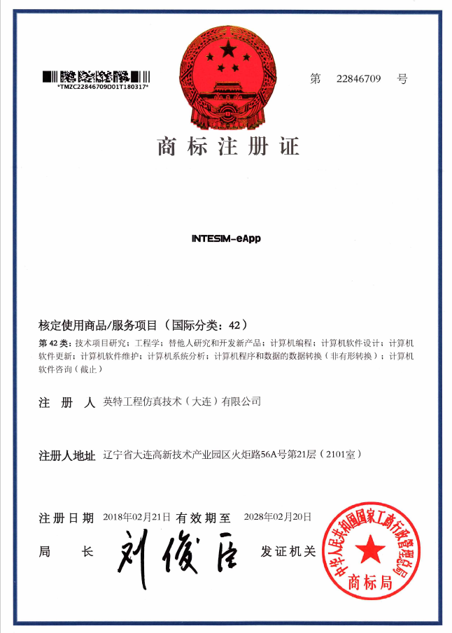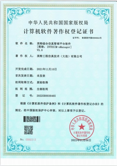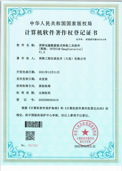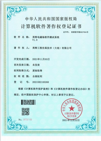 英特仿真產品已獲得88項計算機軟件著作權和29項國家發明專利,已榮獲“中國電工技術學會科技進步一等獎”、“中國機械工程學會科技進步一等獎”、“國家重點新產品”、“中國高新技術成果交易會產品獎”、 “工信部2022年工業軟件產品”、“中國國際軟件博覽會創新獎”、“中國軍民兩用技術創新應用大賽銀獎”、“2016及2017年度中國工業軟件產品獎”、“中國工業APP創新應用大賽二等獎”、大連市科技進步二等獎等榮譽及獎項。同時,英特仿真作為國內CAE軟件自主研發領軍企業已獲得第四批服務型制造示范平臺、工信部特色專業型工業互聯網平臺、國家高新區百新企業、全國硬科技之星、遼寧省專精特新小巨人企業等榮譽,并獲得GJB9001C-2017武器裝備質量管理體系、GB/T19001-2016/ISO9001:2015質量管理體系、高新技術企業等資質。