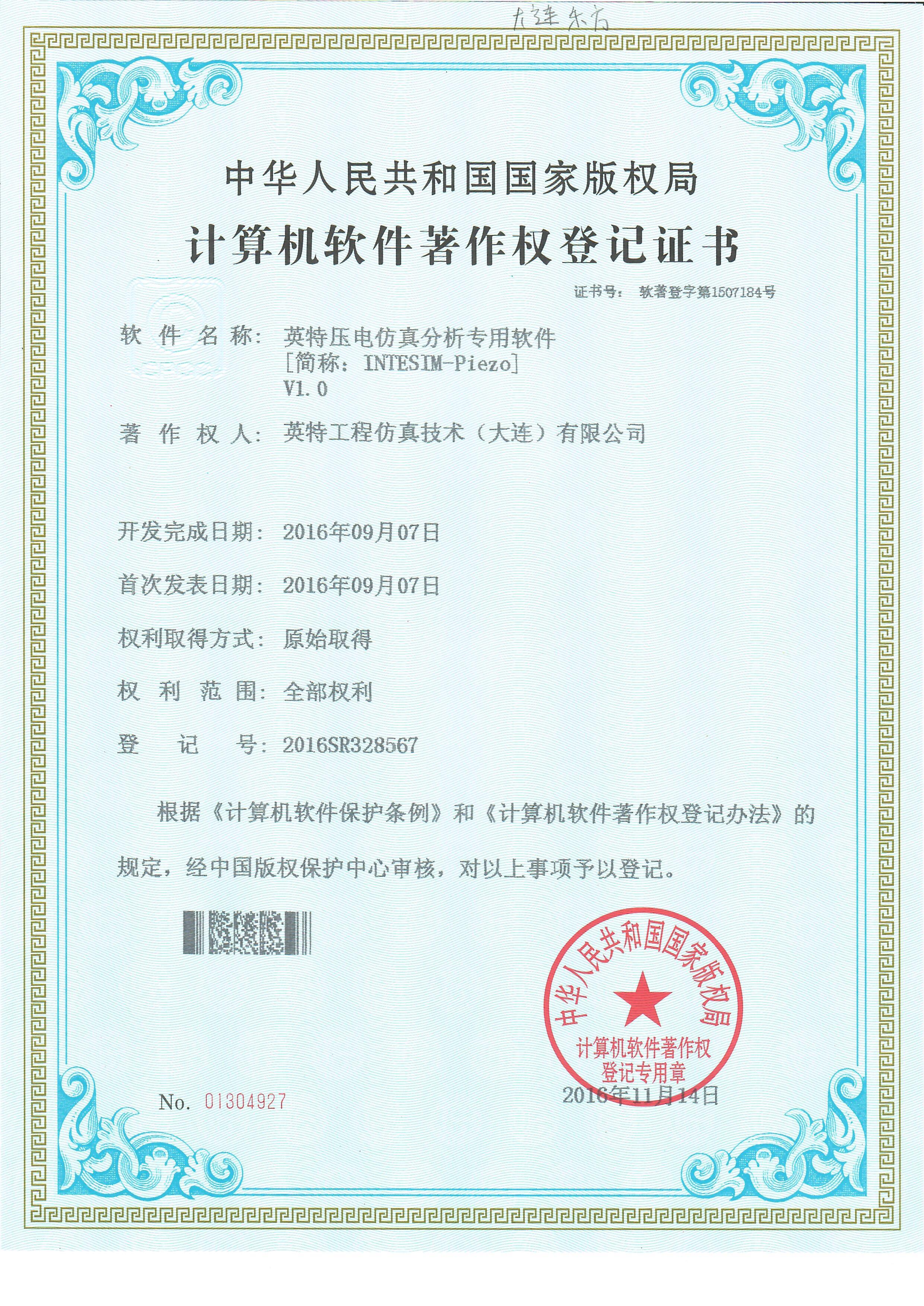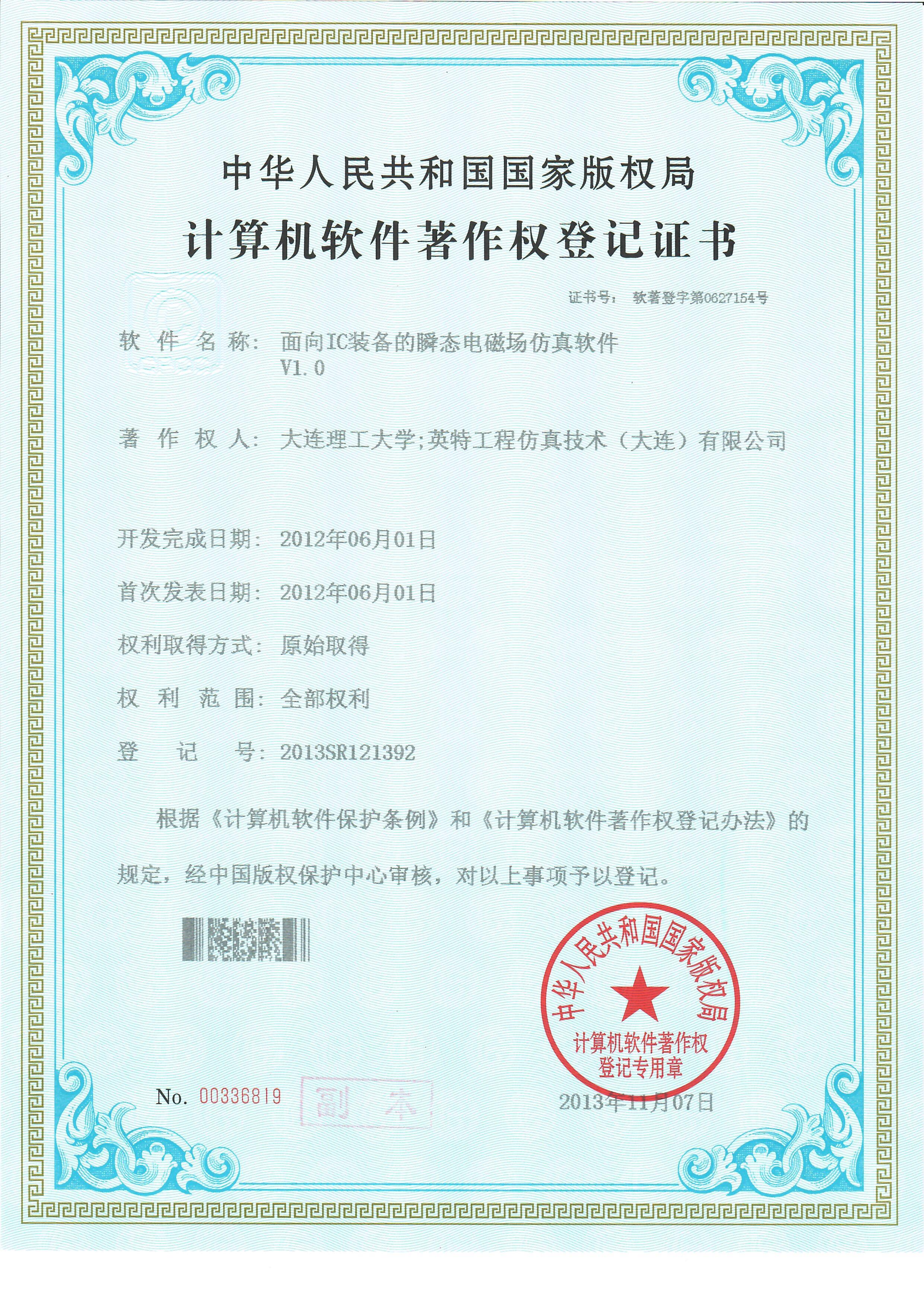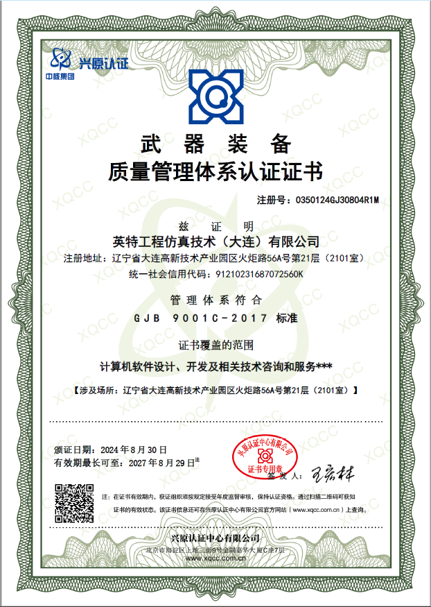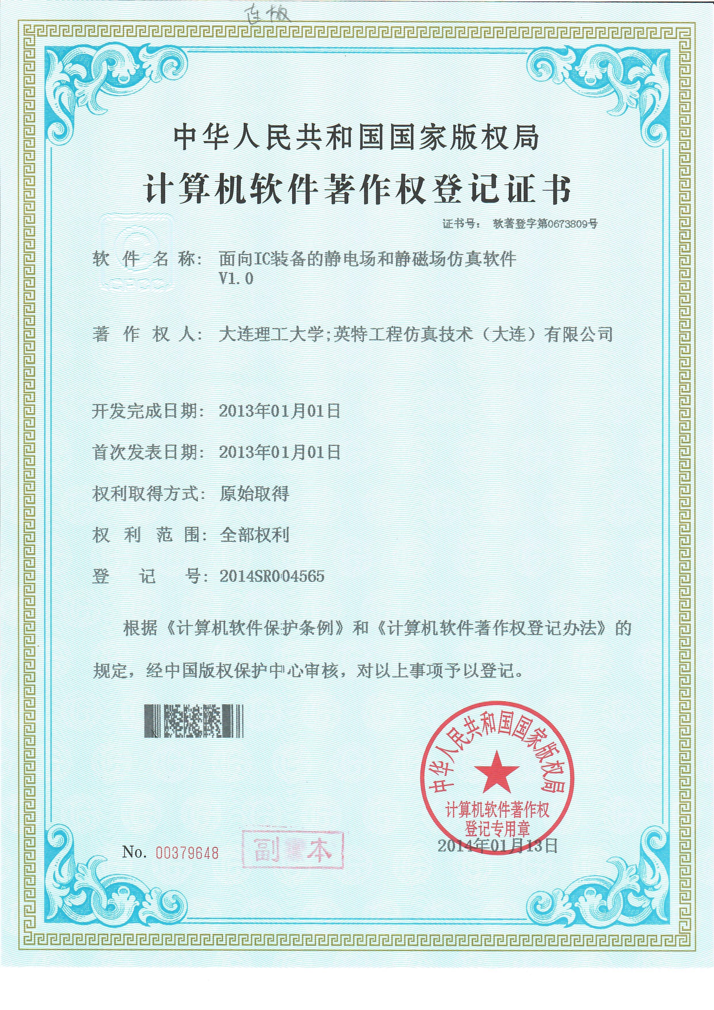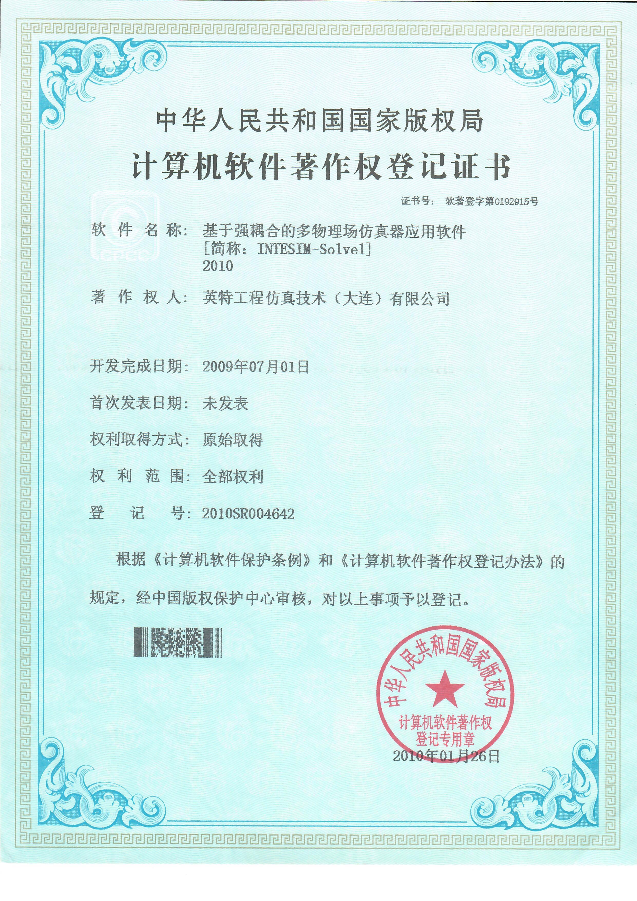 英特仿真產品已獲得88項計算機軟件著作權和29項國家發明專利,已榮獲“中國電工技術學會科技進步一等獎”、“中國機械工程學會科技進步一等獎”、“國家重點新產品”、“中國高新技術成果交易會產品獎”、 “工信部2022年工業軟件產品”、“中國國際軟件博覽會創新獎”、“中國軍民兩用技術創新應用大賽銀獎”、“2016及2017年度中國工業軟件產品獎”、“中國工業APP創新應用大賽二等獎”、大連市科技進步二等獎等榮譽及獎項。同時,英特仿真作為國內CAE軟件自主研發領軍企業已獲得第四批服務型制造示范平臺、工信部特色專業型工業互聯網平臺、國家高新區百新企業、全國硬科技之星、遼寧省專精特新小巨人企業等榮譽,并獲得GJB9001C-2017武器裝備質量管理體系、GB/T19001-2016/ISO9001:2015質量管理體系、高新技術企業等資質。