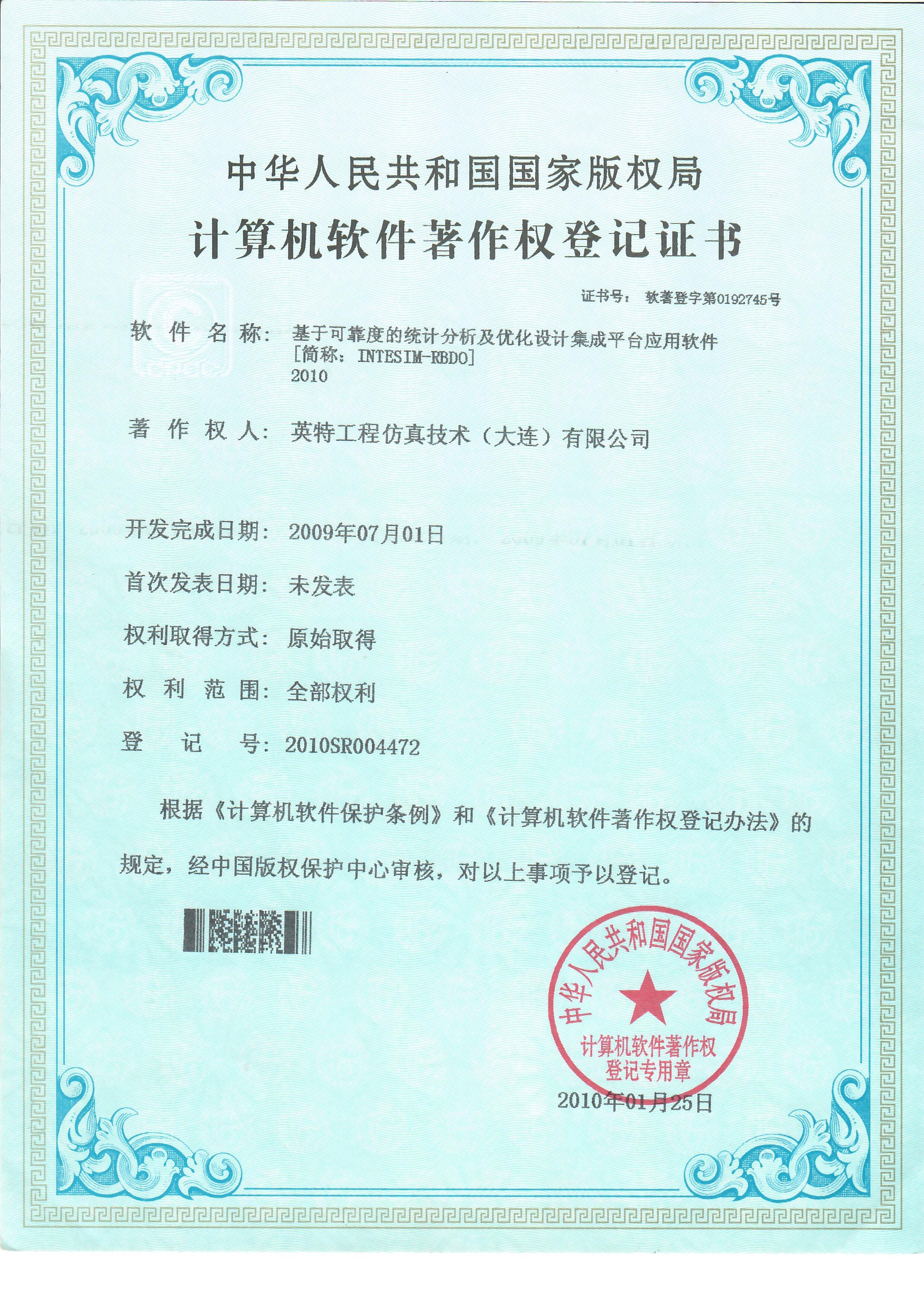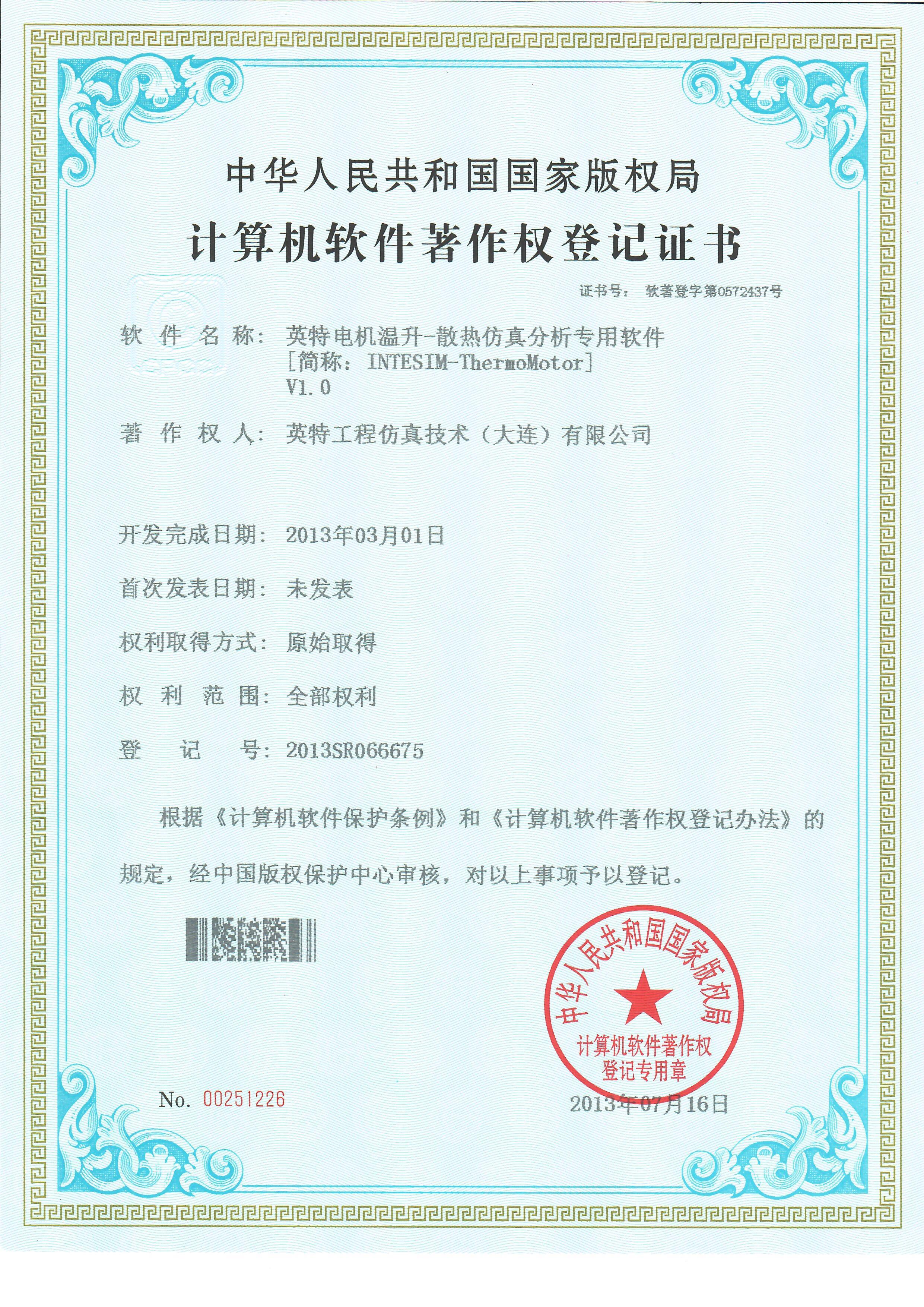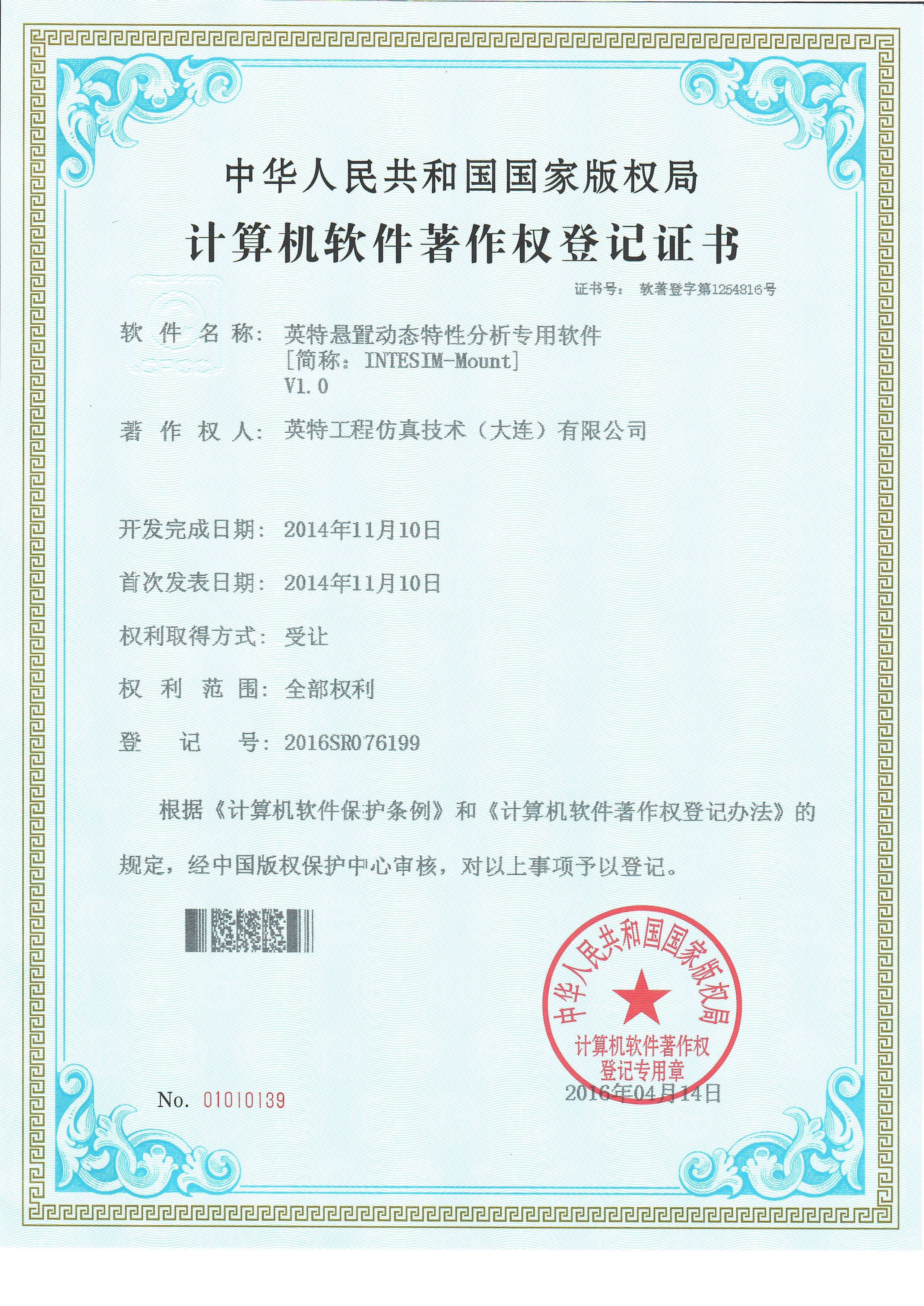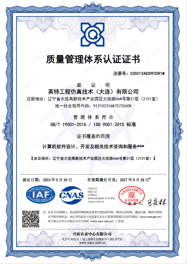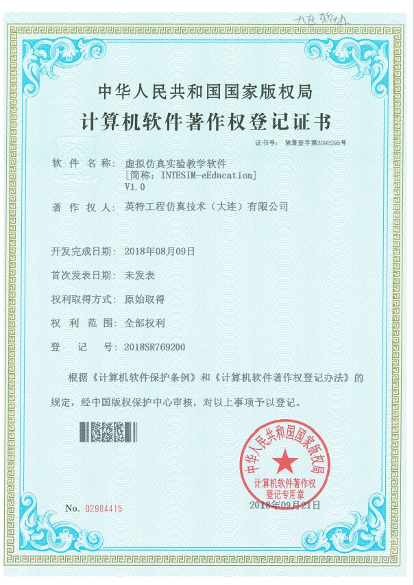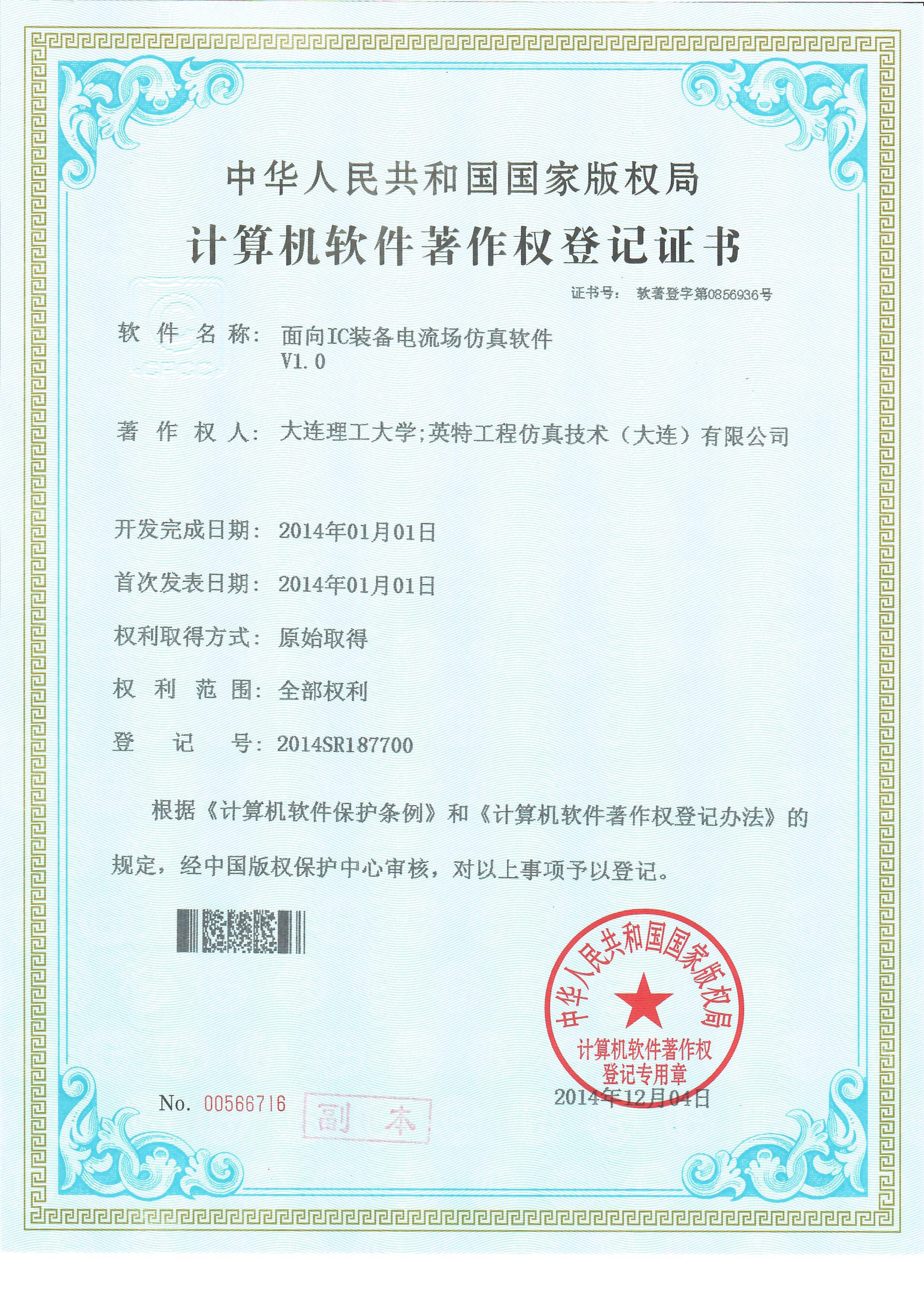 英特仿真產品已獲得88項計算機軟件著作權和29項國家發明專利,已榮獲“中國電工技術學會科技進步一等獎”、“中國機械工程學會科技進步一等獎”、“國家重點新產品”、“中國高新技術成果交易會產品獎”、 “工信部2022年工業軟件產品”、“中國國際軟件博覽會創新獎”、“中國軍民兩用技術創新應用大賽銀獎”、“2016及2017年度中國工業軟件產品獎”、“中國工業APP創新應用大賽二等獎”、大連市科技進步二等獎等榮譽及獎項。同時,英特仿真作為國內CAE軟件自主研發領軍企業已獲得第四批服務型制造示范平臺、工信部特色專業型工業互聯網平臺、國家高新區百新企業、全國硬科技之星、遼寧省專精特新小巨人企業等榮譽,并獲得GJB9001C-2017武器裝備質量管理體系、GB/T19001-2016/ISO9001:2015質量管理體系、高新技術企業等資質。