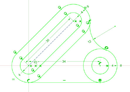 ? 提供多樣的全尺寸約束功能:同心約束、水平約束、豎直約束、平行約束、垂直約束、相切約束、相等約束、對稱約束、點在線上約束、固定約束、距離約束、X/Y 方向約束、半徑約束